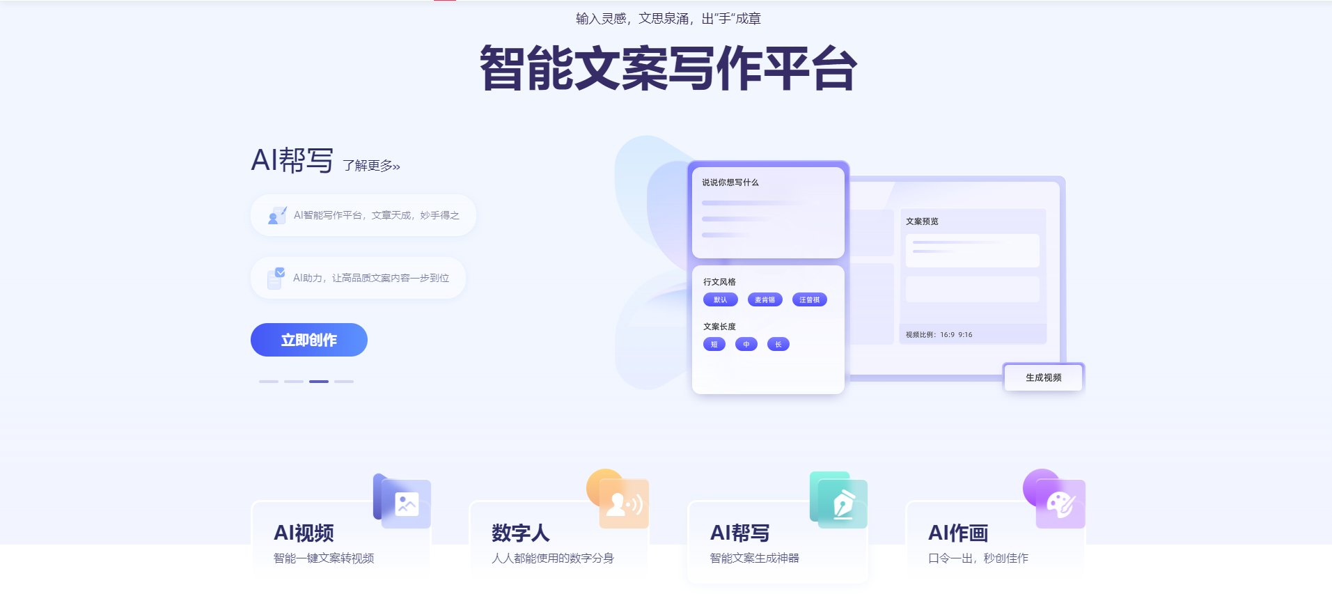 智能分析:平台具备强大的智能分析能力,能够自动解析用户输入的文案、素材等,并根据分析结果快速生成视频。这一功能大大简化了视频制作的流程,让用户能够更专注于内容创作本身。