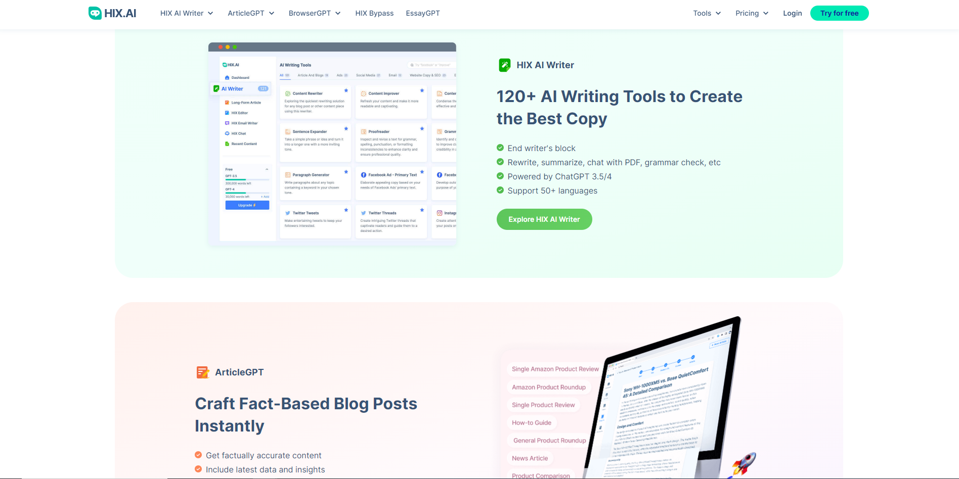 HIX AI是一款功能强大的AI人工智能写作助手,它集成了超过120种AI写作工具,支持近50种语言,能够满足各种写作需求。无论你是需要撰写学校论文、广告文案、产品介绍,还是新闻资讯、自媒体推文、SEO文章,甚至是电子邮件,HIX AI都能为你提供有力的支持。
