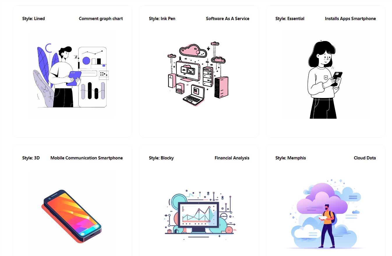 然而,PictoGraphic的亮点并不仅仅在于其丰富的插图库。该平台还具备强大的自定义生成功能,允许用户根据自己的艺术风格和需求,通过简单的文本提示在几秒钟内生成自定义插图。这项功能为设计师们带来了极大的创作灵活性,他们可以根据具体的项目要求或品牌特点,轻松创作出符合需求的个性化插图。