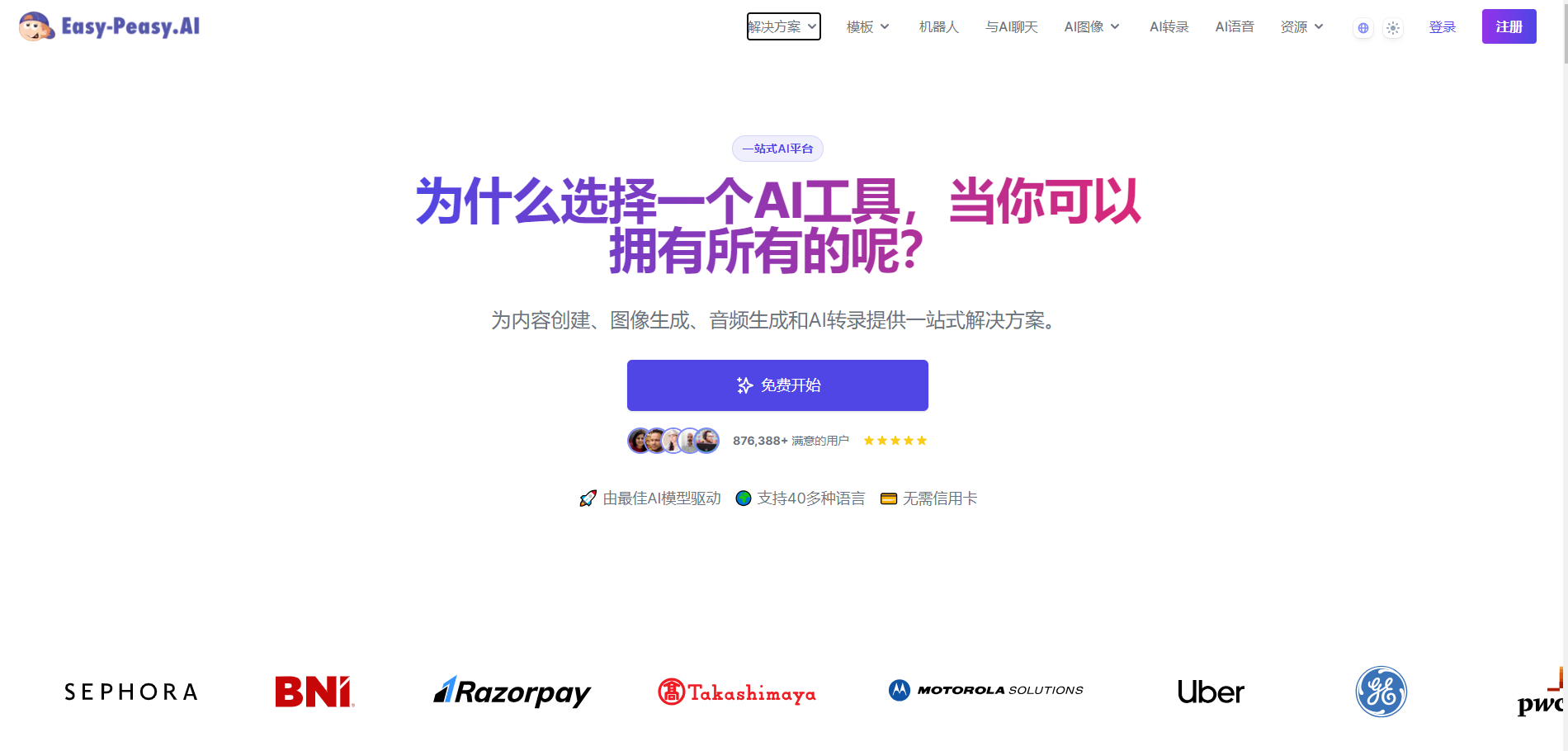 在内容创作的道路上,我们一直在寻找一种能够高效、准确地生成内容的方法。传统的写作、绘画和音频转文字方式往往需要耗费大量的时间和精力,而且难以保证内容的质量和一致性。然而,Easy-Peasy.AI的出现,彻底改变了这一现状。作为一款免费的AI内容生成助手,它不仅能够快速生成高质量的文本、图像和音频转文字内容,而且支持多种使用场景,让内容创作变得更加轻松和高效。