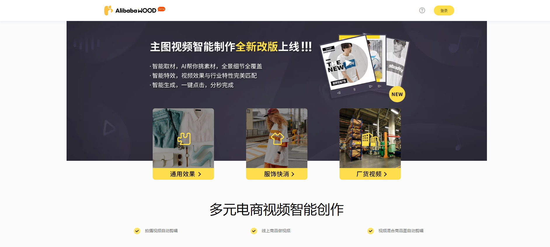 AlibabaWOOD是阿里巴巴官方推出的一款高效智能制作商品短视频的工具。它能快速利用商家提交的素材来智能生成各种尺寸时长的视频。这款工具由阿里巴巴和浙江大学联合实验室研发,首次通过技术打通了商品与人类的情感连接,并通过音乐情感分析技术自动匹配最适合商品的视频音乐。使用AlibabaWOOD,商家可以在一分钟内生成200个短视频,极大地提高了商品短视频的制作效率。