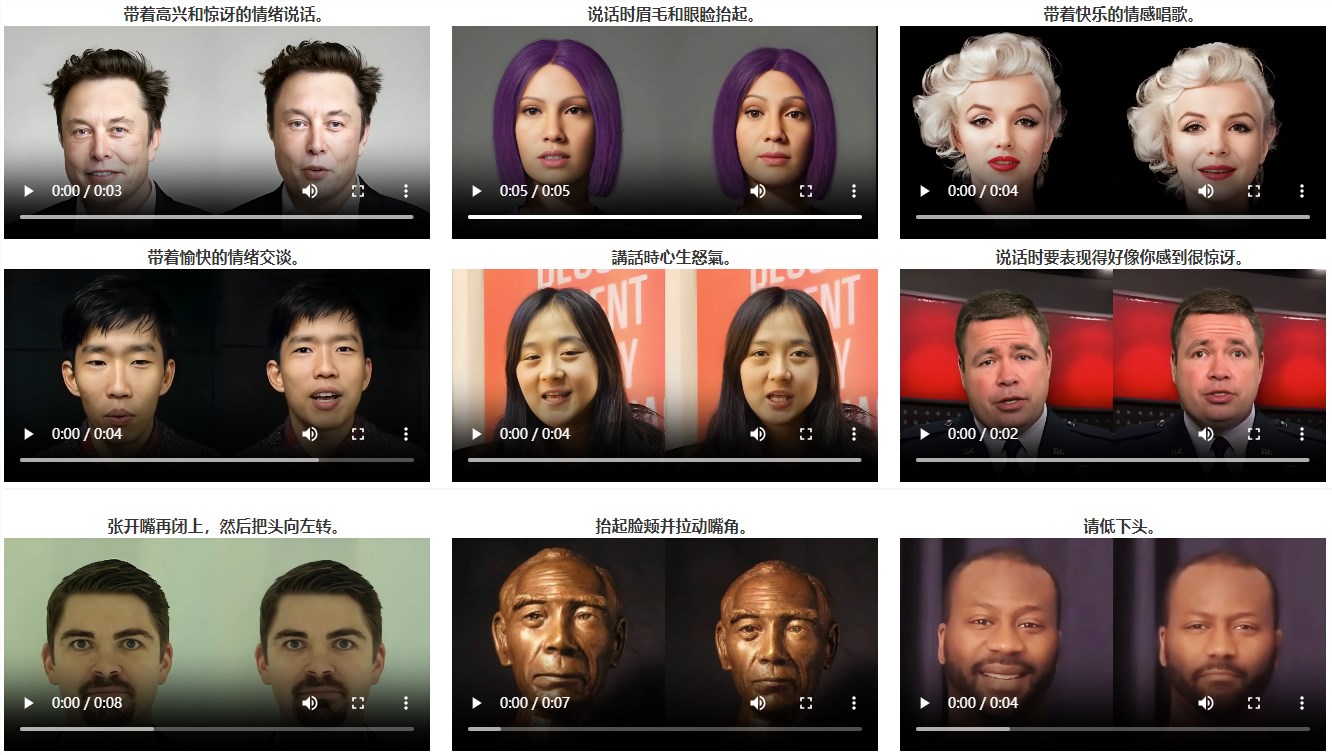 InstructAvatar的突破之处在于其通过自然语言界面来控制虚拟形象的情感和面部动作。用户只需输入简单的文本指令,就能让虚拟形象展现出丰富的情感和动作变化。这一技术不仅解决了传统方法中生成视频缺乏生动性的问题,更在细粒度情绪控制、口型同步质量和自然度方面展现出了卓越的性能。