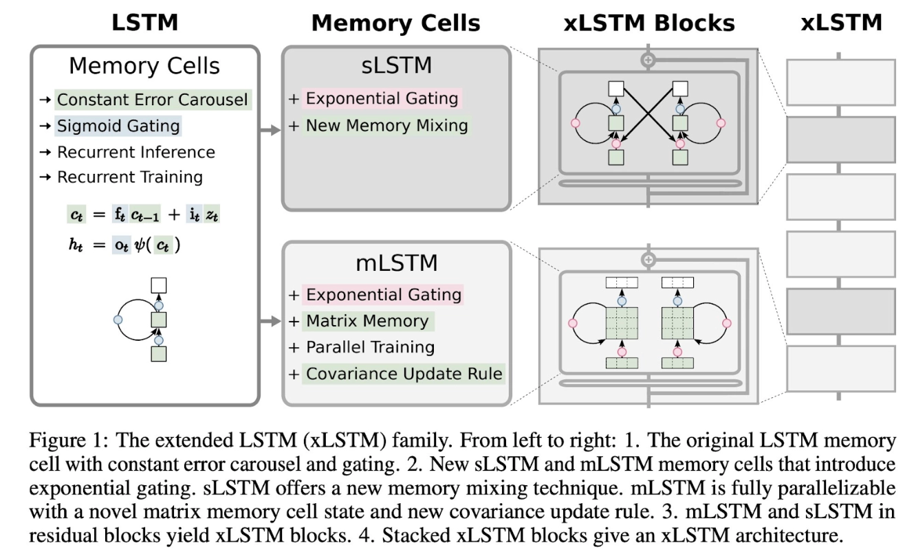 针对这一挑战,Sepp Hochreiter在最新论文中提出了xLSTM架构。AI旋风认为,这一新架构的核心在于引入了指数型门控循环网络,并融合了“sLSTM”和“mLSTM”两项记忆规则。这些改进使得xLSTM能够有效地利用RAM资源,实现类似Transformer架构的并行化处理能力。这意味着xLSTM能够同时处理所有Token,大大提高了数据处理的效率。