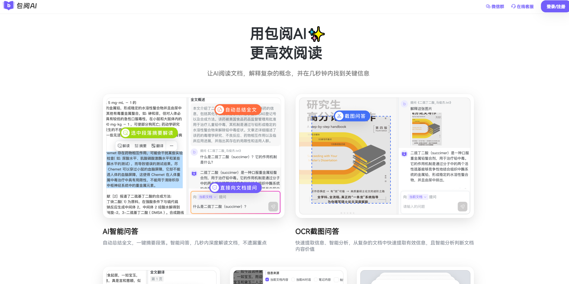 在繁忙的工作和生活中,我们常常需要阅读大量的文档、报告、论文等,但往往因为时间紧张或内容复杂,难以快速找到关键信息。这时,一个高效的阅读助手就显得尤为重要。而包阅AI正是这样一款工具,它集成了先进的AI技术,能够帮助我们即时提炼总结、高效获取答案,成为我们阅读过程中的得力助手。