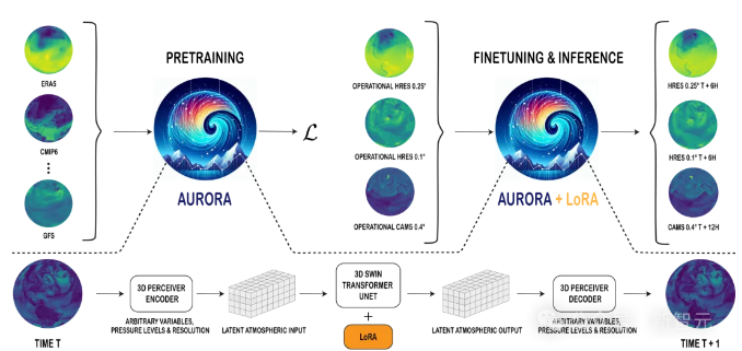 AI旋风认为,Aurora之所以能够展现出如此强大的预测能力,关键在于其对大数据的深度学习和智能处理。通过对大量不同数据的预训练和对特定任务的微调,Aurora学会了捕捉大气中错综复杂的模式和结构。这使得它在面对特定任务时,即使训练数据有限,也能迅速适应并作出准确的预测。