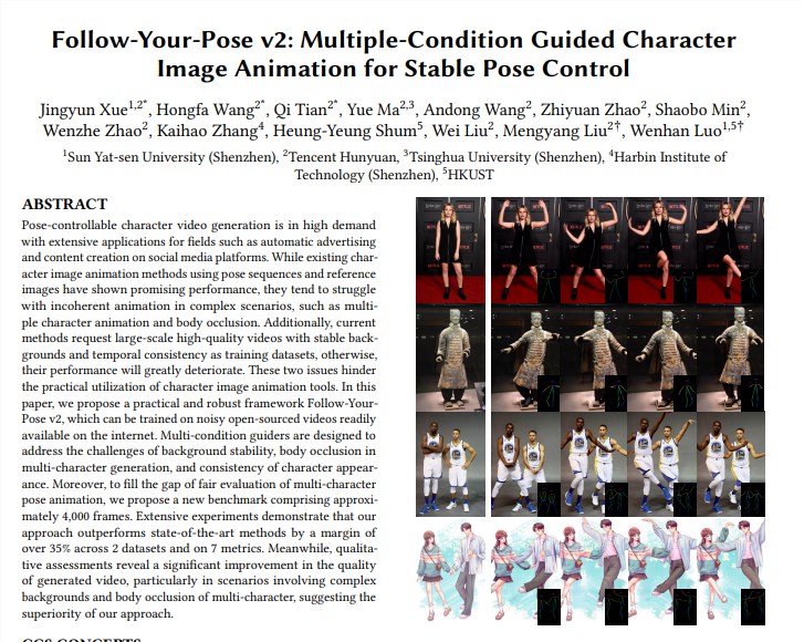 在AI技术飞速发展的今天,视频生成领域迎来了新的突破。腾讯混元团队联合中山大学、香港科技大学共同推出了全新的图生视频模型——Follow-Your-Pose-v2,这一创新技术不仅实现了从单人到多人的跨越,更在视频生成质量、泛化能力等方面取得了显著进步,为电影内容制作、增强现实、游戏制作及广告等行业带来了无限可能。