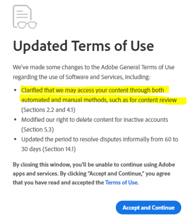 根据Adobe最新更新的隐私条款,该公司明确表示“我们有可能以自动或人工方式访问你(创作)的内容”。这一表述在设计师和艺术家群体中引起了极大的关注和担忧。长期以来,设计师和艺术家们都非常重视自己的作品隐私和知识产权,他们通常与客户之间有着严格的保密协议,以确保作品的原创性和独特性。然而,Adobe的新隐私政策似乎打破了这一平衡,让许多用户感到不安。