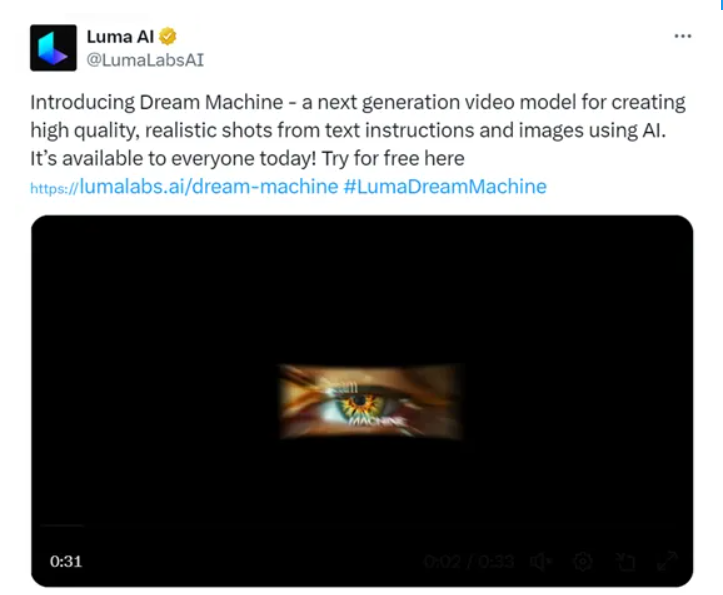 6月13日,科技界再次迎来一场创新风暴。知名3D建模平台Luma AI正式发布其最新研发的文生视频模型Dream Machine,并宣布对所有用户免费开放使用。这一革命性的产品不仅支持文本输入,还能以图片为引导生成高质量视频,其炸裂程度堪与OpenAI的Sora模型相媲美。