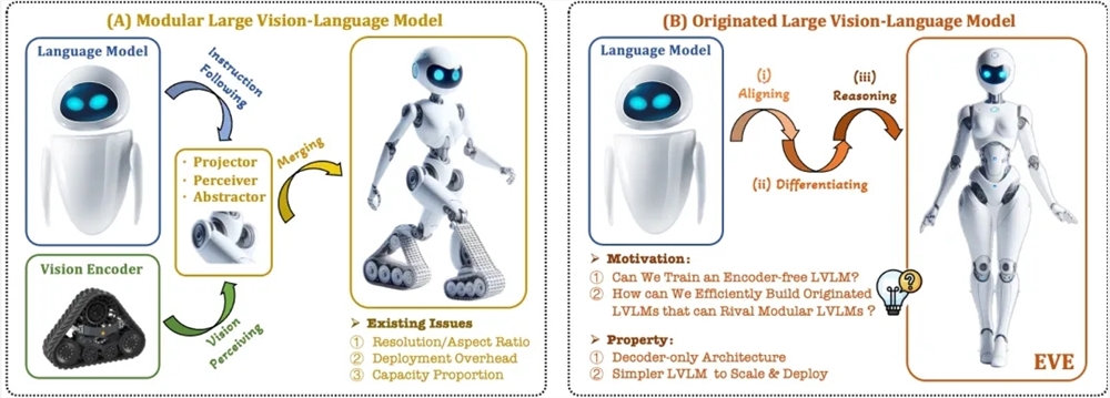 在人工智能的浩瀚星空中,多模态大模型的研究正如火如荼地推进,国内外顶尖企业和研究机构纷纷亮出各自的“杀手锏”。从OpenAI的GPT系列到Google的Gemini,再到Microsoft的Phi-3V,每一款模型的发布都预示着技术的飞跃与突破。而今,国内科研力量也不甘落后,智源研究院携手大连理工大学、北京大学等顶尖学府,共同推出了新一代无编码器的视觉语言多模态大模型——EVE,为AI领域再次投下了一枚震撼弹。
