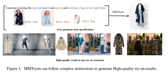 MMTryon虚拟试穿框架凭借其独特的优势,引发了业界的广泛关注。该框架仅需用户输入几件衣服的图片以及穿法的文本指令,便能迅速生成高质量的模特试穿效果。无论是真人还是漫画人物,MMTryon都能轻松应对,为用户带来极致的试穿体验。