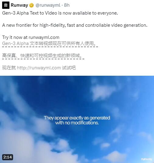 在科技与创意的交汇点,7月2日凌晨,Runway平台以一场突如其来的盛宴,让全球创意视频爱好者迎来了不眠之夜。这家备受瞩目的生成式AI巨头正式宣布,其文生视频领域的最新力作——Gen-3 Alpha,正式向全球用户全面开放,这一消息迅速在社交媒体上引发了轩然大波。这不仅是技术进步的又一里程碑,更是创意视频制作领域的一场革命。