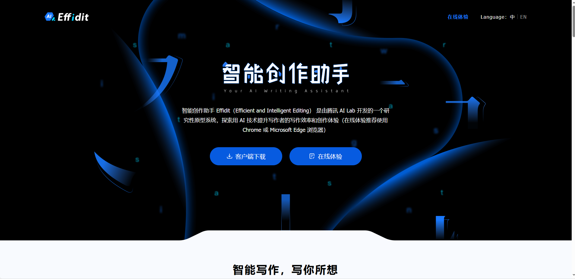 在数字化时代,写作已成为我们日常生活中不可或缺的一部分。无论是撰写工作报告、学术论文,还是创作博客文章、社交媒体内容,高效的写作工具都是提升工作效率和创作体验的关键。今天,AI旋风要为大家介绍一款由腾讯AI Lab研发的智能编辑助手——Effidit(Efficient and Intelligent Editing)。